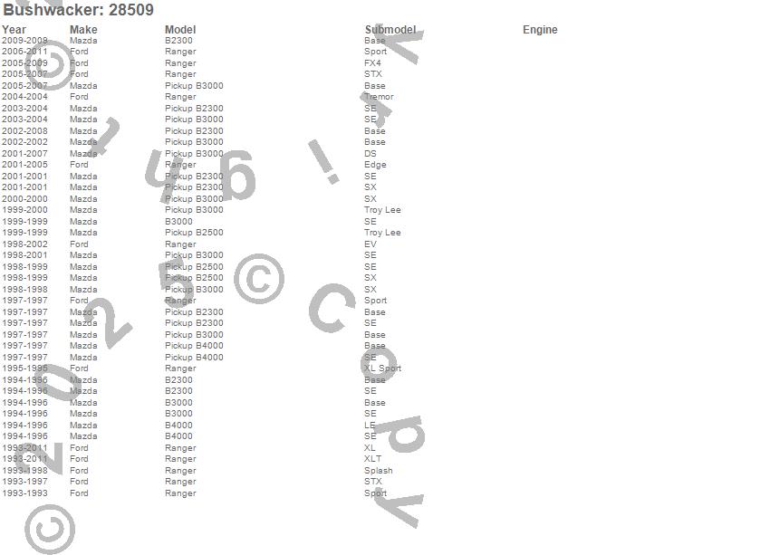 B2300, B2500, B3000, B4000, Ranger, Ford, Mazda, 2011, 2010, 2009, 2008, 2007, 2006, 2005, 2004, 2003, 2002, 2001, 2000, 1999