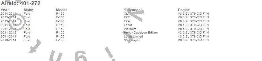Below is an abbreviated list of applications for the AIRAID Cold Air Dam Air Intake System.