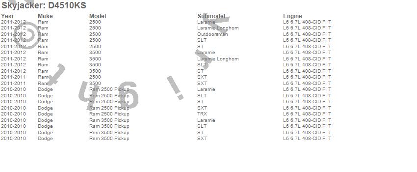 Below is an abbreviated list of applications for the Suspension Lift Kit.