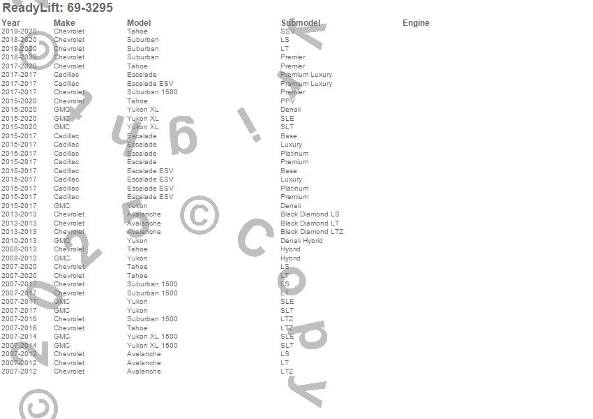ReadyLift - SST Lift Kit P/N 69-3295 Features: