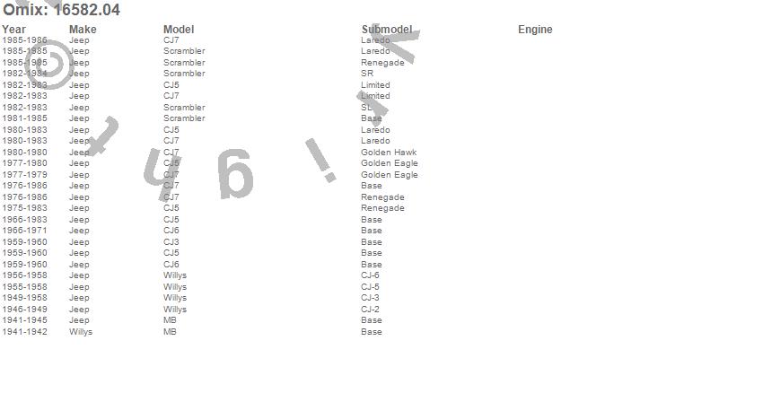 CJ3, CJ5, CJ6, CJ7, MB, Scrambler, Willys, Jeep, Willys, 1986, 1985, 1984, 1983, 1982, 1981, 1980, 1979, 1978, 1977, 1976