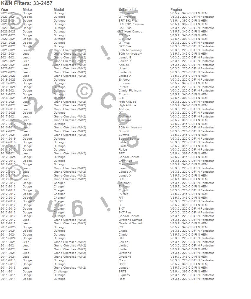 Challenger, Charger, Durango, Grand Cherokee (WK2), Dodge, Jeep, 2025, 2024, 2023, 2022, 2021, 2020, 2019, 2018, 2017, 2016, 2015, 2014, 2013, 2012