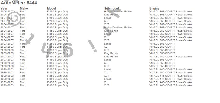 Below is an abbreviated list of applications for the Ford Factory Match Pyrometer/EGT Gauge Kit.
