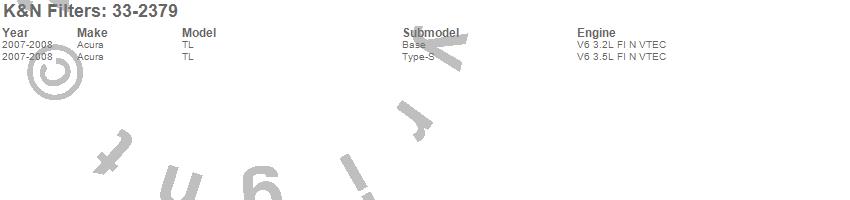 Below is an abbreviated list of applications for the Air Filter.