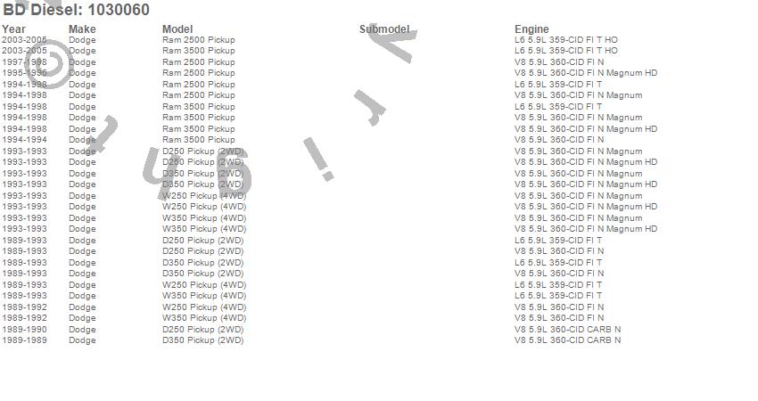 D250 Pickup, D350 Pickup, Ram 2500, Ram 3500, W250 Pickup, W350 Pickup, Dodge, 2005, 2004, 2003, 1998, 1997, 1996, 1995, 1994, 1993, 1992, 1991, 1990, 1989
