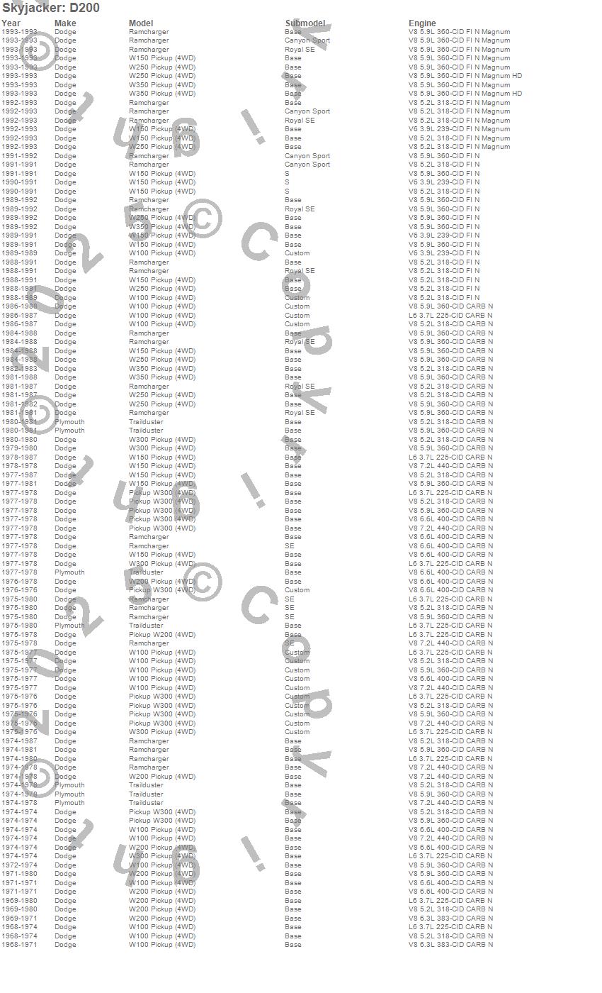 Ramcharger, Trailduster, W100 Pickup, W150 Pickup, W200 Pickup, W250 Pickup, W300 Pickup, W350 Pickup, Dodge, Plymouth, 1993, 1992, 1991, 1990, 1989, 1988, 1987, 1986, 1985, 1984