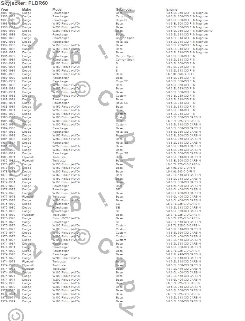 Ramcharger, Trailduster, W100 Pickup, W150 Pickup, W200 Pickup, W250 Pickup, Dodge, Plymouth, 1993, 1992, 1991, 1990, 1989, 1988, 1987, 1986, 1985, 1984, 1983, 1982