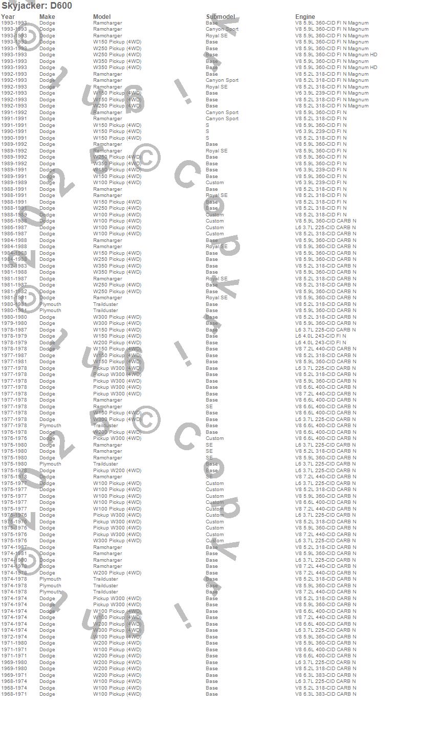 Ramcharger, Trailduster, W100 Pickup, W150 Pickup, W200 Pickup, W250 Pickup, W300 Pickup, W350 Pickup, Dodge, Plymouth, 1993, 1992, 1991, 1990, 1989, 1988, 1987, 1986, 1985, 1984