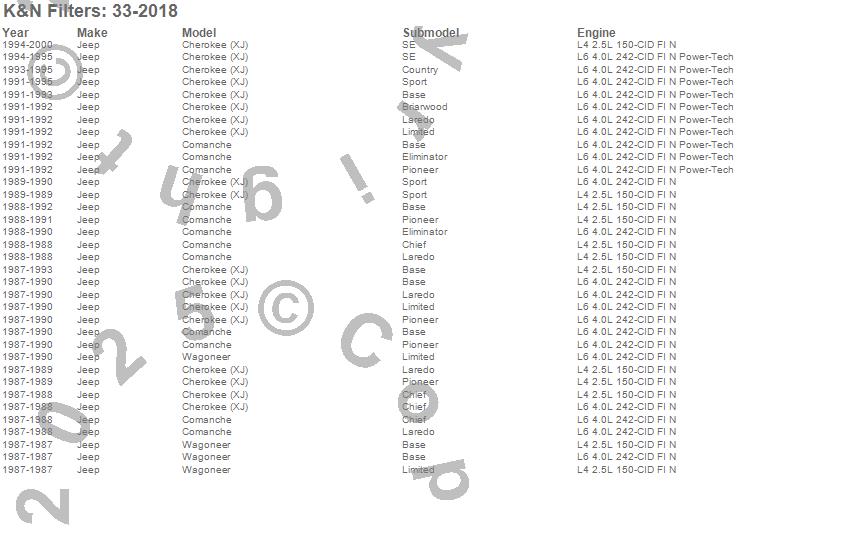 Below is an abbreviated list of applications for the Air Filter.