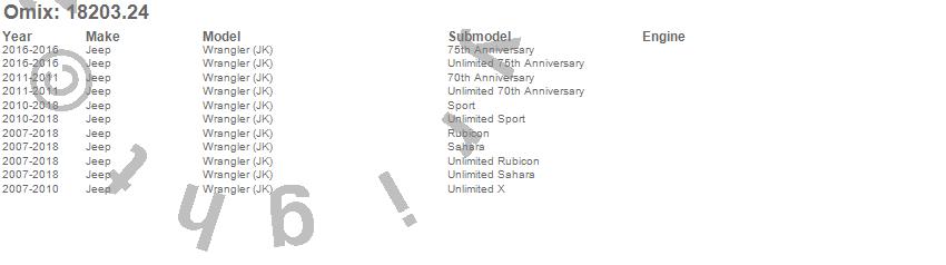 Wrangler (JK), Jeep, 2018, 2017, 2016, 2015, 2014, 2013, 2012, 2011, 2010, 2009, 2008, 2007