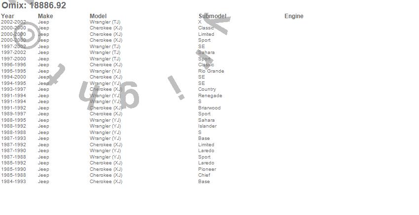 Cherokee (XJ), Wrangler (TJ), Wrangler (YJ), Jeep, 2002, 2001, 2000, 1999, 1998, 1997, 1996, 1995, 1994, 1993, 1992, 1991, 1990, 1989, 1988, 1987