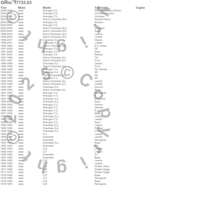 Cherokee (XJ), CJ5, CJ7, Grand Cherokee (WJ), Grand Cherokee (ZJ), Scrambler, Wrangler (LJ), Wrangler (TJ), Wrangler (YJ), Jeep, 2006, 2005, 2004, 2003, 2002, 2001, 2000, 1999, 1998, 1997
