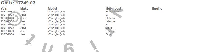Wrangler (YJ), Jeep, 1993, 1992, 1991, 1990, 1989, 1988, 1987