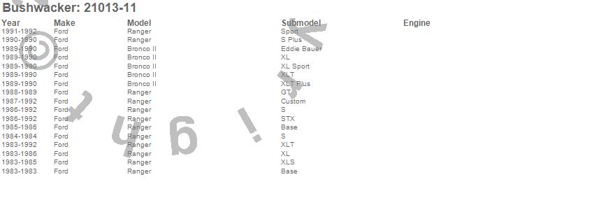 Bronco II, Ranger, Ford, 1992, 1991, 1990, 1989, 1988, 1987, 1986, 1985, 1984, 1983