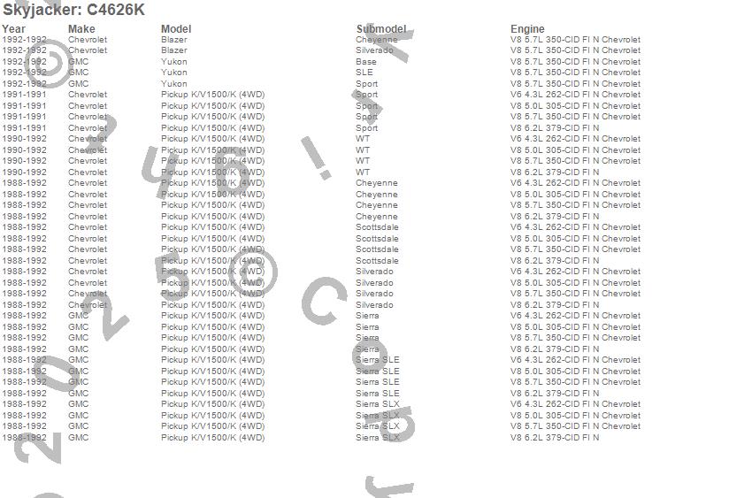 Below is an abbreviated list of applications for the Suspension Lift Kit.