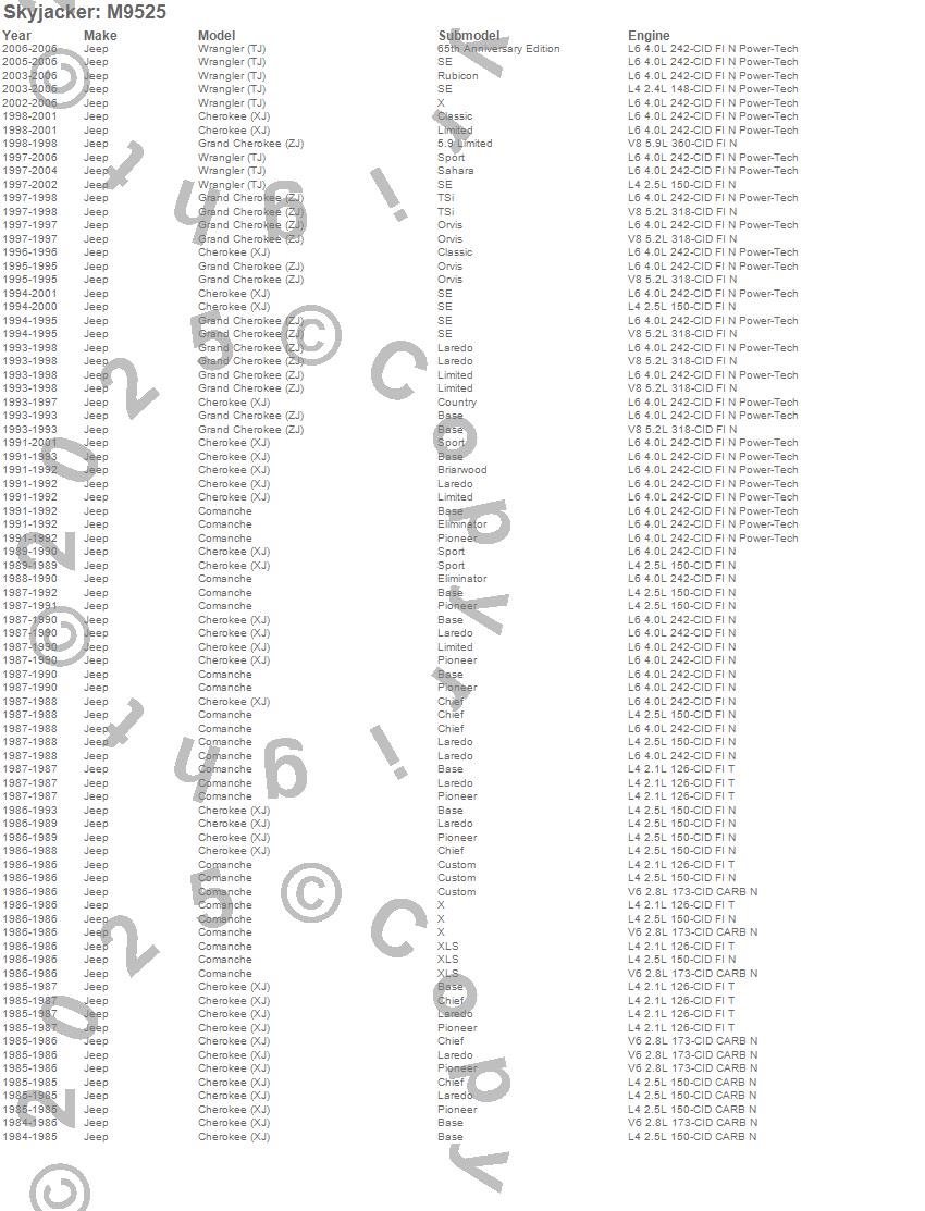 Cherokee (XJ), Comanche, Grand Cherokee (ZJ), Wrangler (TJ), Jeep, 2006, 2005, 2004, 2003, 2002, 2001, 2000, 1999, 1998, 1997, 1996, 1995, 1994, 1993, 1992