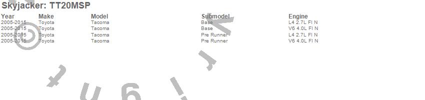 Skyjacker - Suspension Lift Kit P/N TT20MSP Features: