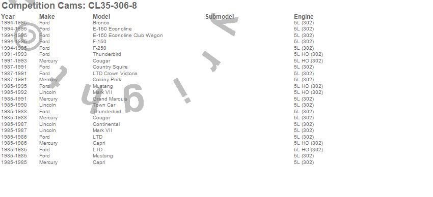 Competition Cams - Blower Computer Compatible Camshaft/Lifter Kit P/N CL35-306-8 Features: