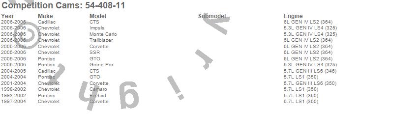 Below is an abbreviated list of applications for the Xtreme RPM Camshaft.