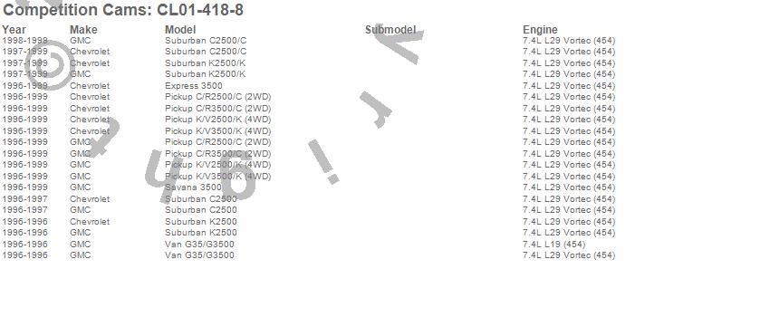 Below is an abbreviated list of applications for the Xtreme Energy Camshaft/Lifter Kit.