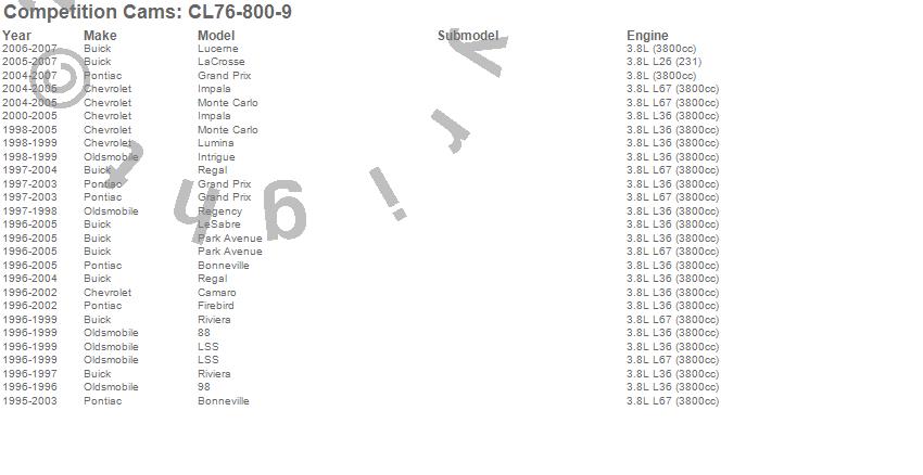 Below is an abbreviated list of applications for the Xtreme Energy Camshaft/Lifter Kit.