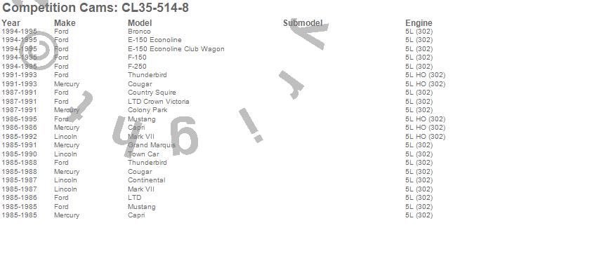 Below is an abbreviated list of applications for the Xtreme Energy Camshaft/Lifter Kit.
