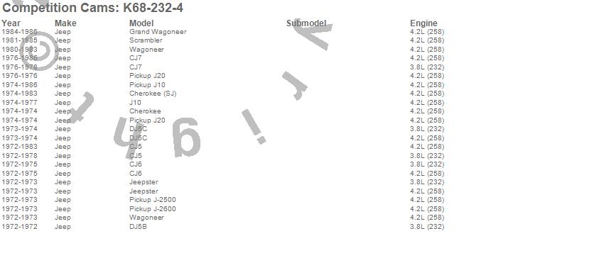 Below is an abbreviated list of applications for the Xtreme 4 X 4 Camshaft Kit.