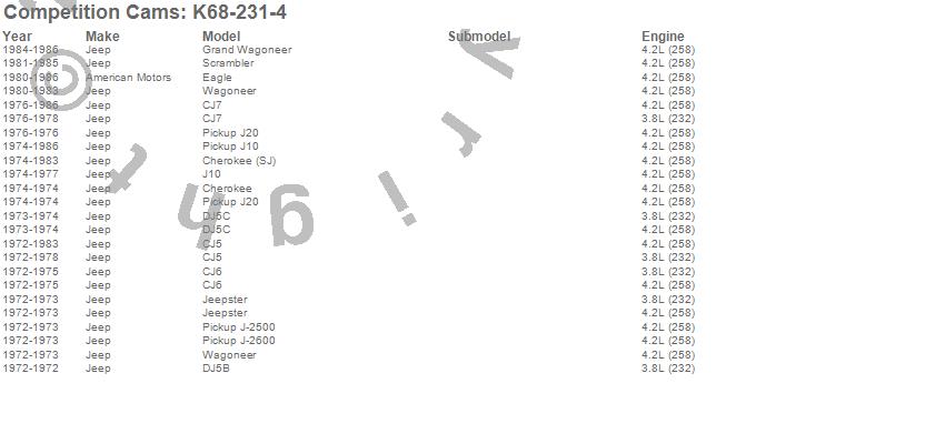 Competition Cams - Xtreme 4 X 4 Camshaft Kit P/N K68-231-4 Features: