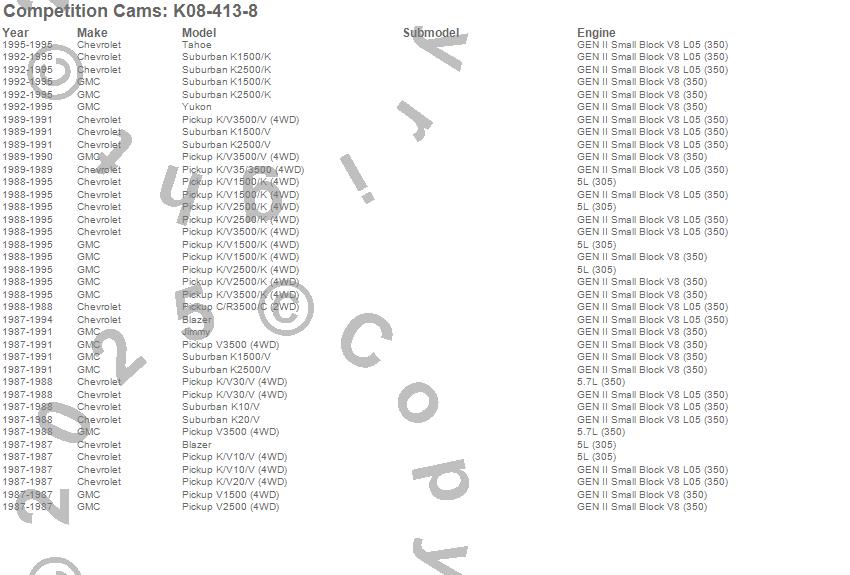 Below is an abbreviated list of applications for the Xtreme 4 X 4 Camshaft Kit.