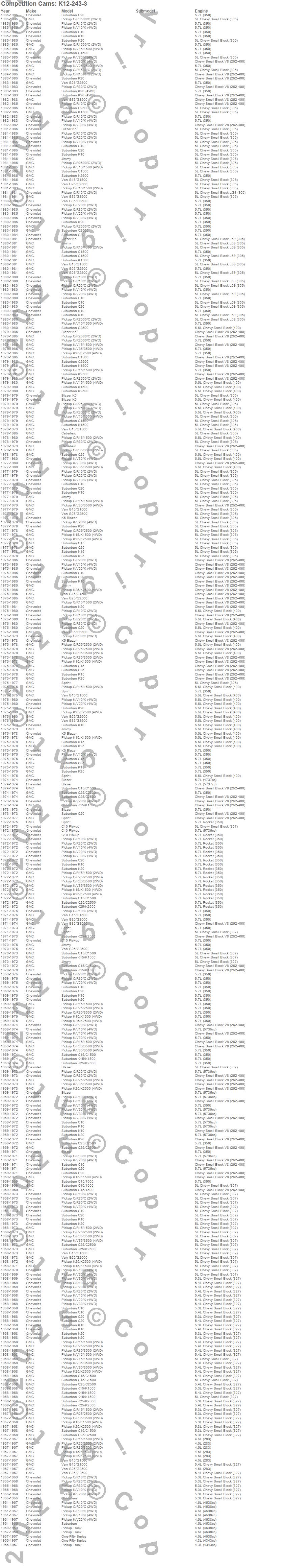 Below is an abbreviated list of applications for the Xtreme 4 X 4 Camshaft Kit.