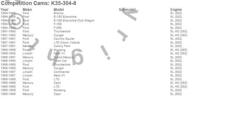 Competition Cams - Blower Computer Compatible Camshaft Kit P/N K35-304-8 Features:
