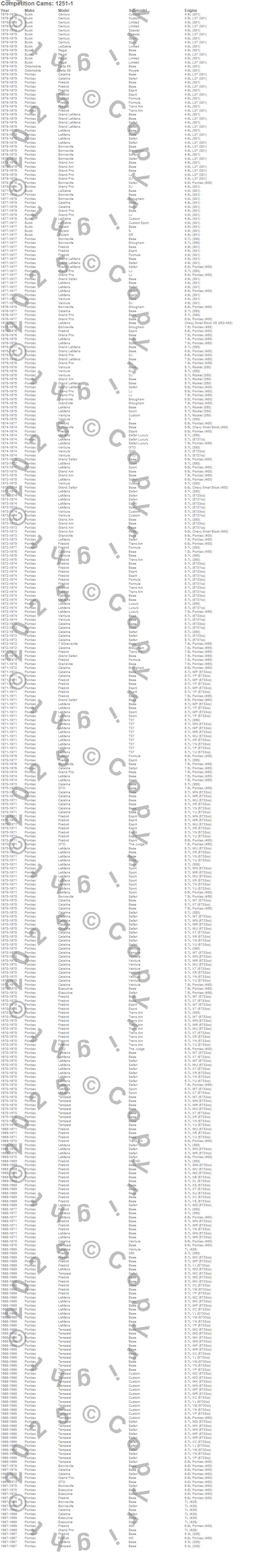 Bonneville, Catalina, Catalina Ventura, Century, Delta 88, Executive, Firebird, Firebird Trans Am, Grand Am, Grand LeMans, Grand Prix, Grand Safari, Grandville, GTO, LeMans, LeSabre, Regal, Safari, Skylark, Tempest