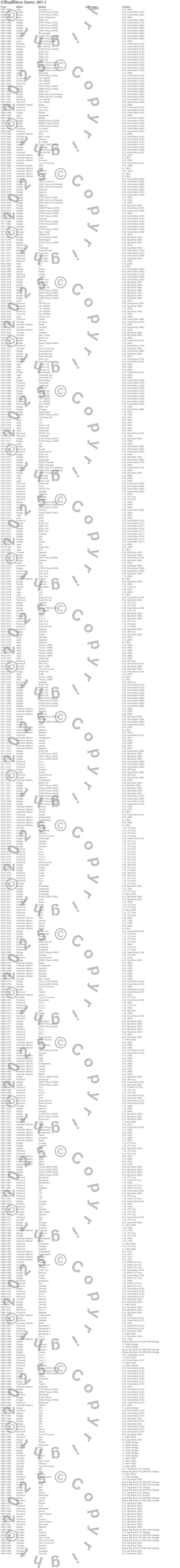 300, 330, 440, 880, A100 Van, Ambassador, American, AMX, Aspen, B100 Van, B150 Van, B200 Van, B250 Van, B300 Van, B350 Van, Barracuda, Belvedere, Belvedere II, CB300 Van, Challenger