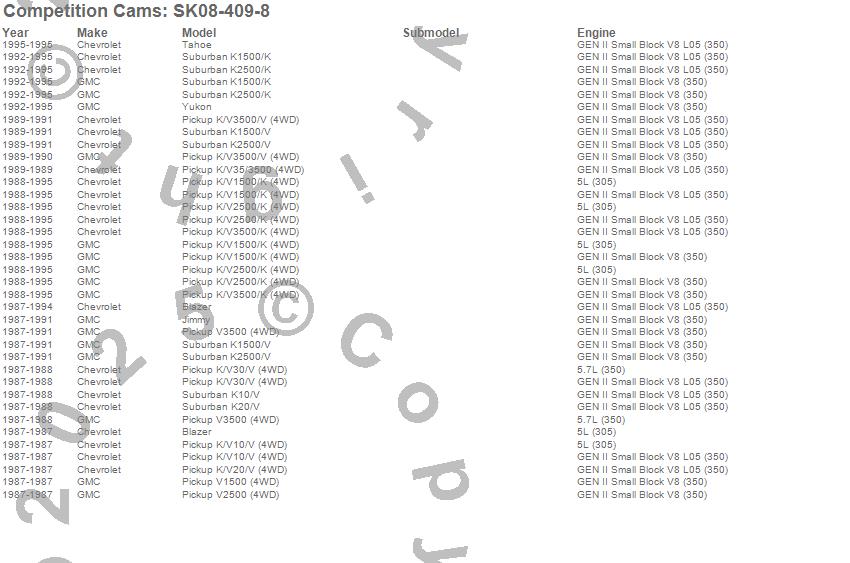 Below is an abbreviated list of applications for the Xtreme 4 X 4 Camshaft Small Kit.