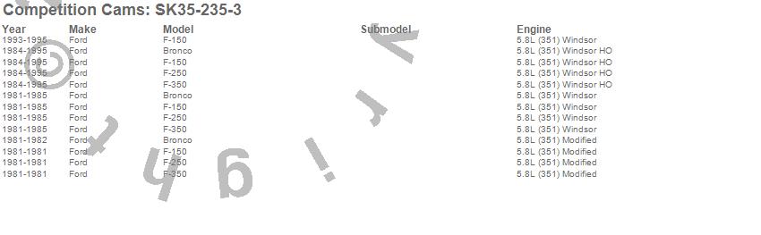 Competition Cams - Xtreme 4 X 4 Camshaft Small Kit P/N SK35-235-3 Features: