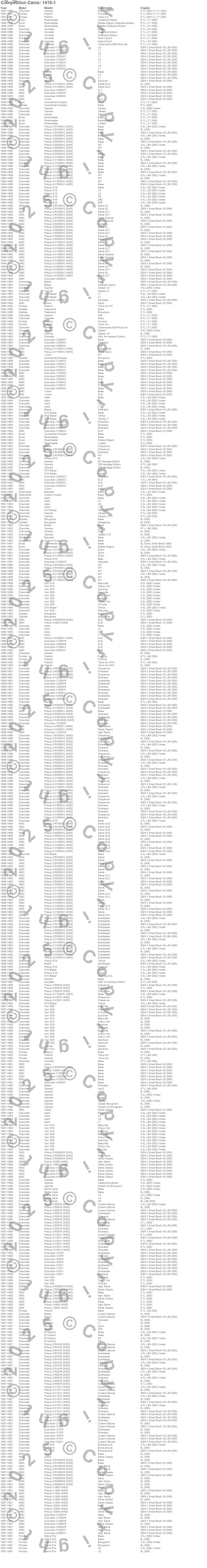 Astro, Blazer, Bravada, Brougham, C1500 Pickup, C1500 Suburban, C2500 Pickup, C2500 Suburban, C3500 Pickup, Camaro, Caprice, Commercial Chassis, Corvette, Custom Cruiser, El Camino, Firebird, Fleetwood, G10 Van, G20 Van, G30 Van