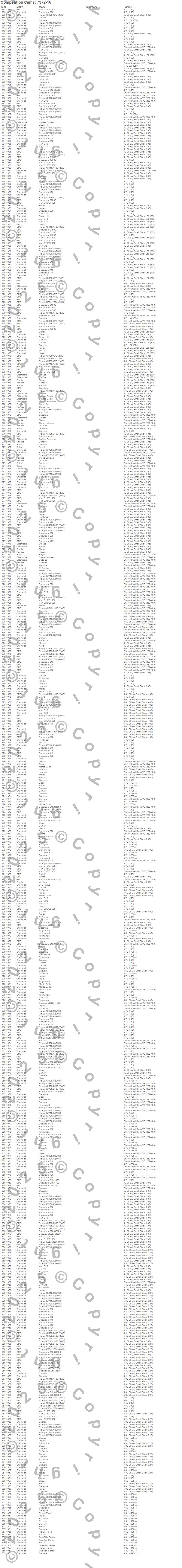 Bel Air, Biscayne, Blazer, Blazer K5, Bonneville, Brookwood, C10 Pickup, C10 Suburban, C15 Suburban, C15/C1500 Suburban, C1500 Pickup, C1500 Suburban, C20 Pickup, C20 Suburban, C25 Suburban, C25/C2500 Pickup, C25/C2500 Suburban, C2500 Pickup, C2500 Suburban, C30 Pickup