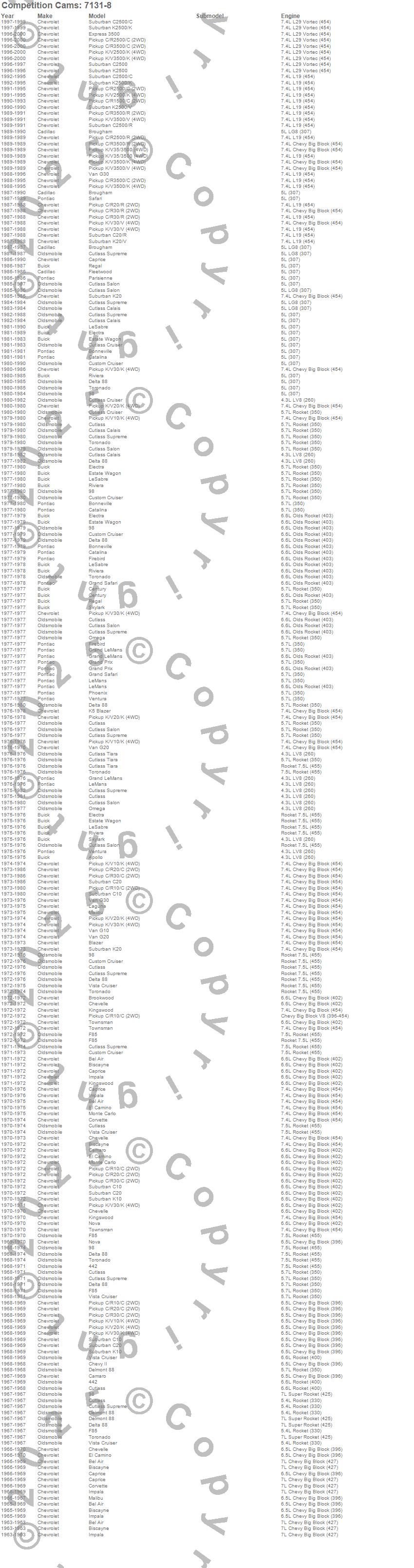 442, 98, Apollo, Bel Air, Biscayne, Blazer, Blazer K5, Bonneville, Brookwood, Brougham, C10 Pickup, C10 Suburban, C1500 Pickup, C20 Pickup, C20 Suburban, C2500 Pickup, C2500 Suburban, C30 Pickup, C3500 Pickup, Camaro