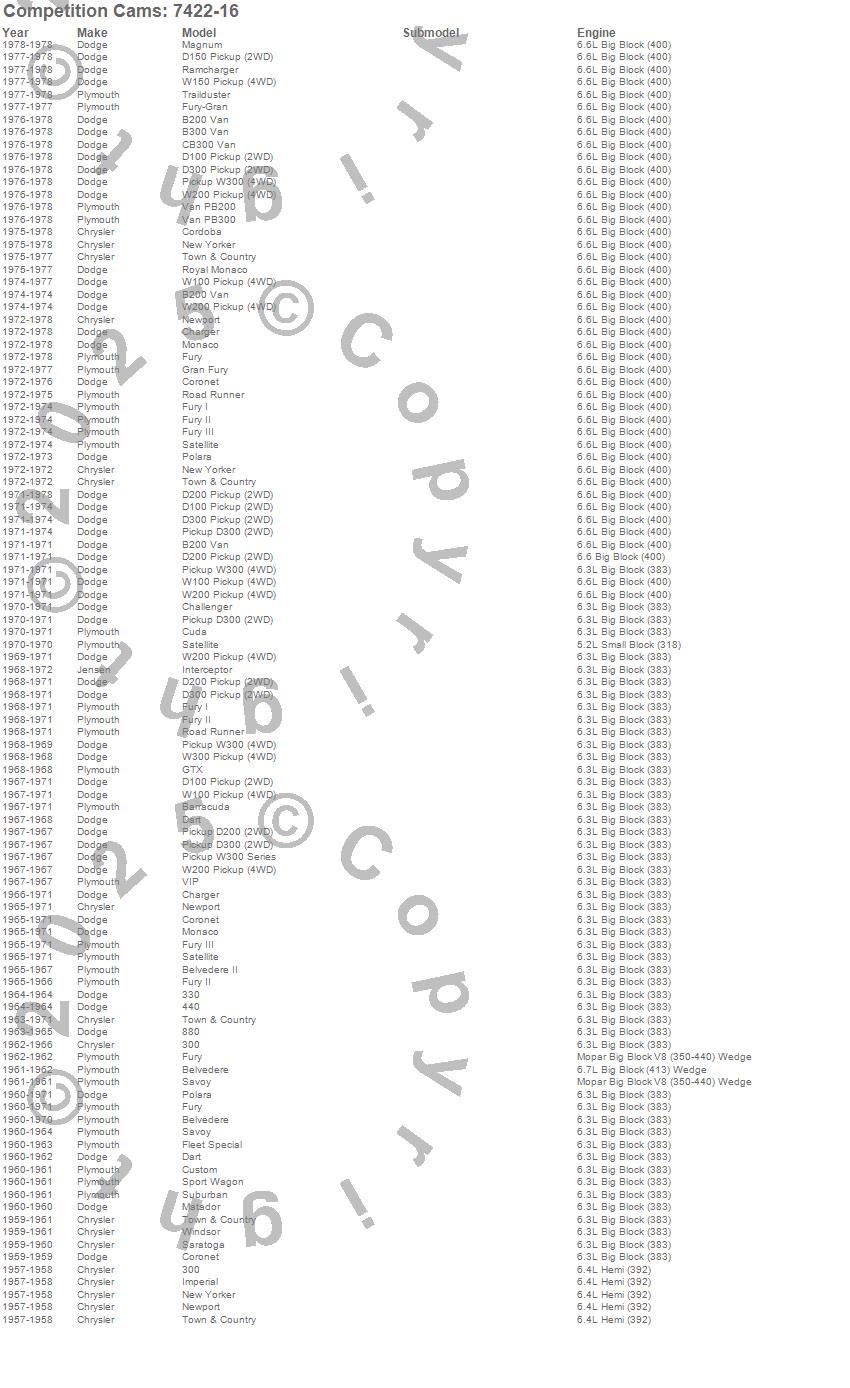 300, 330, 440, 880, B200 Van, B300 Van, Barracuda, Belvedere, Belvedere II, CB300 Van, Challenger, Charger, Cordoba, Coronet, Cuda, Custom, D100 Pickup, D150 Pickup, D200 Pickup, D200 Series