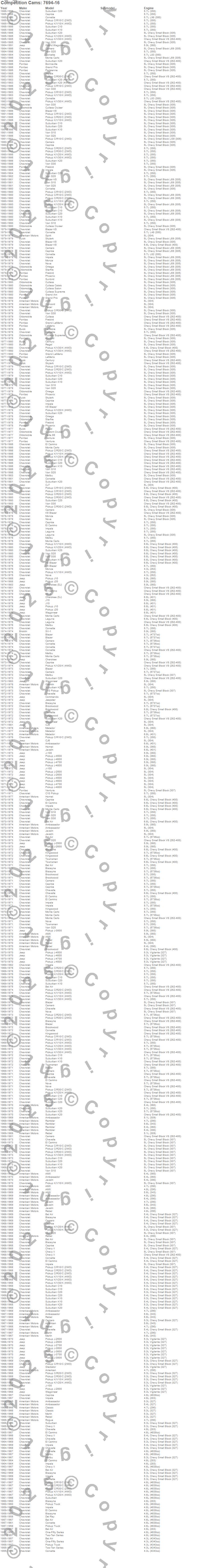 Ambassador, American, AMX, Bel Air, Biscayne, Blazer, Blazer K5, Bonneville, Brookwood, C10 Pickup, C10 Suburban, C20 Pickup, C20 Suburban, C30 Pickup, Camaro, Caprice, Century, Chevelle, Chevy II, Classic