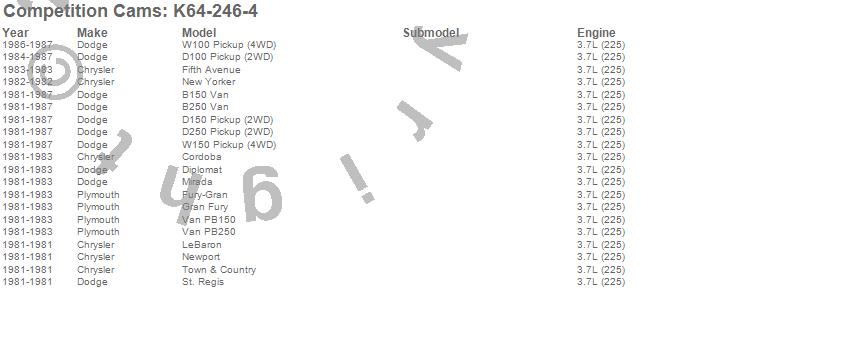 Below is an abbreviated list of applications for the High Energy Camshaft Kit.