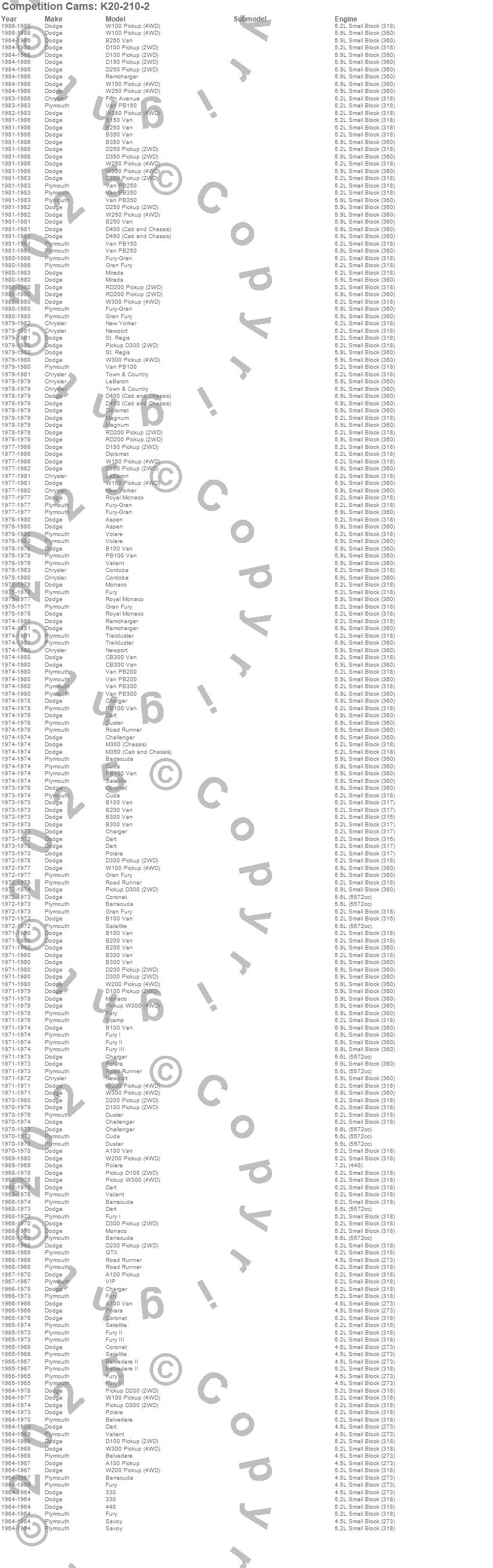 Below is an abbreviated list of applications for the High Energy Camshaft Kit.