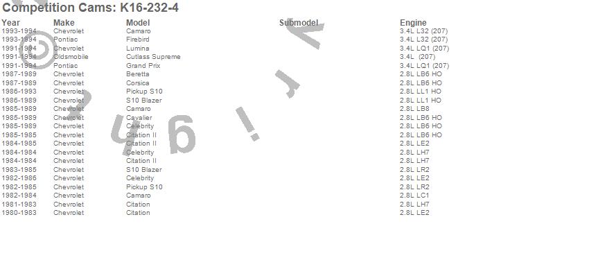 Below is an abbreviated list of applications for the High Energy Camshaft Kit.