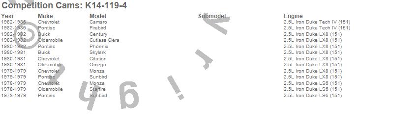 Below is an abbreviated list of applications for the High Energy Camshaft Kit.