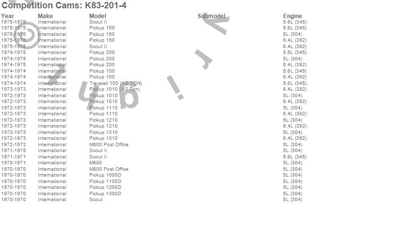 Below is an abbreviated list of applications for the High Energy Camshaft Kit.