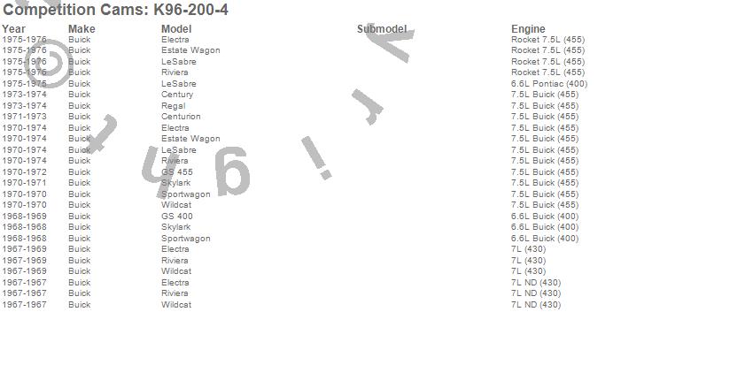 Below is an abbreviated list of applications for the High Energy Camshaft Kit.