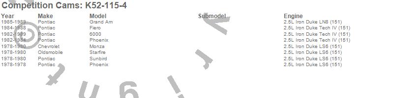 Below is an abbreviated list of applications for the High Energy Camshaft Kit.