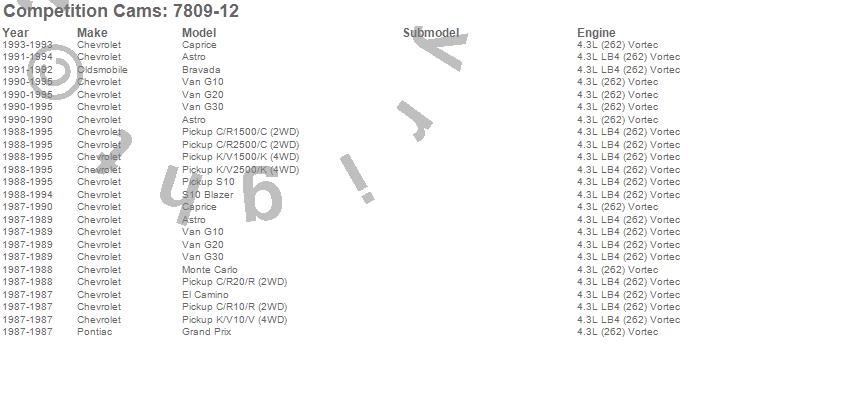 Astro, Bravada, C1500 Pickup, C2500 Pickup, Caprice, El Camino, G10 Van, G20 Van, G30 Van, Grand Prix, K1500 Pickup, K2500 Pickup, Monte Carlo, R10 Pickup, R20 Pickup, S10 Blazer, S10 Pickup, V10 Pickup, Chevrolet, Oldsmobile