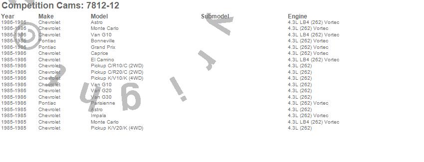 Astro, Bonneville, C10 Pickup, C20 Pickup, Caprice, El Camino, G10 Van, G20 Van, G30 Van, Grand Prix, Impala, K10 Pickup, K20 Pickup, Monte Carlo, Parisienne, Chevrolet, Pontiac, 1986, 1985