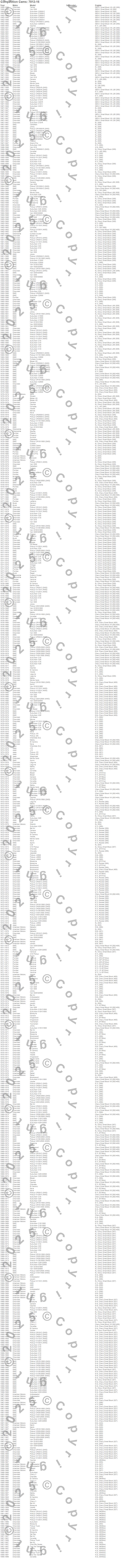 Ambassador, American, AMX, Bel Air, Biscayne, Blazer, Blazer K5, Bonneville, Brookwood, C10 Pickup, C10 Suburban, C15 Suburban, C15/C1500 Suburban, C1500 Pickup, C1500 Suburban, C20 Pickup, C20 Suburban, C25 Suburban, C25/C2500 Pickup, C25/C2500 Suburban